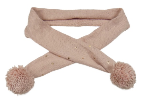 Svetloružová pletená šál s bambulemi a hviezdičkou