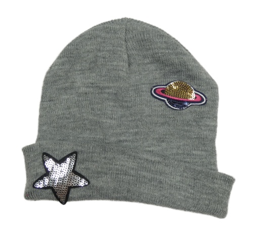 Sivá čapica s obrázky z flitrů