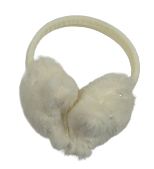 Smetanové chlupaté klapky na uši s perličkami - hviezda