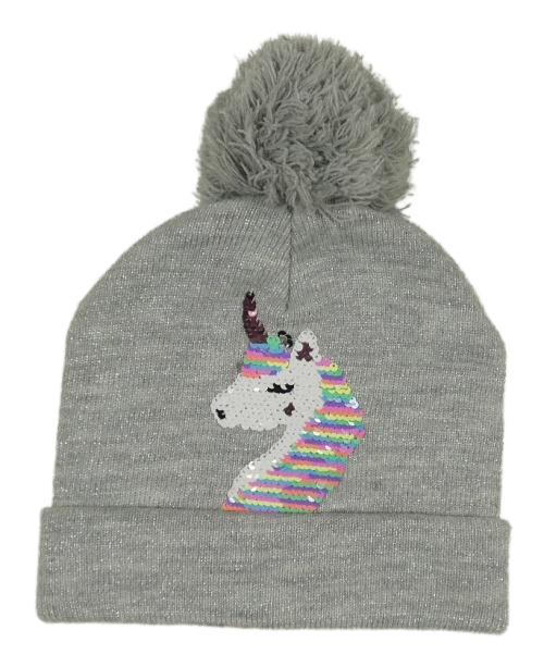 Strieborná trblietavá pletená čapica s jednorožcem z flitrů
