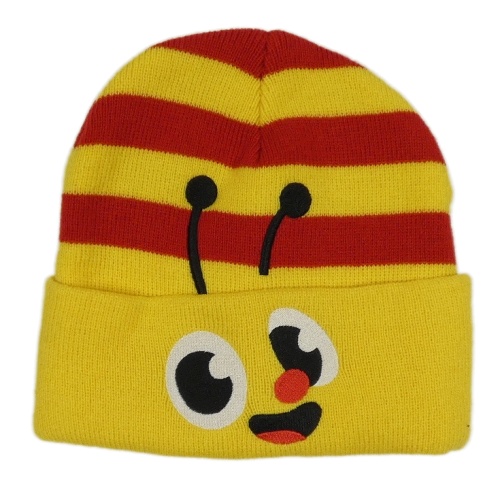 Žlto-červená pruhovaná pletená čapica s očima a tykadly
