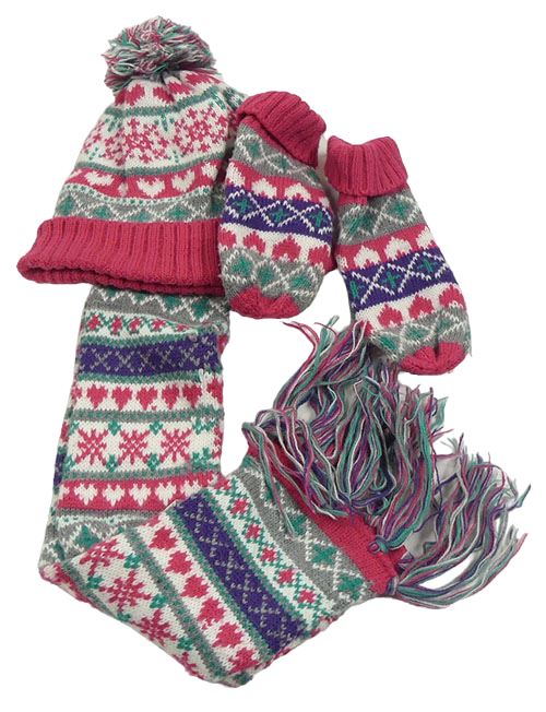 3set- barevná vzorovaná čepice+ šála+ rukavice