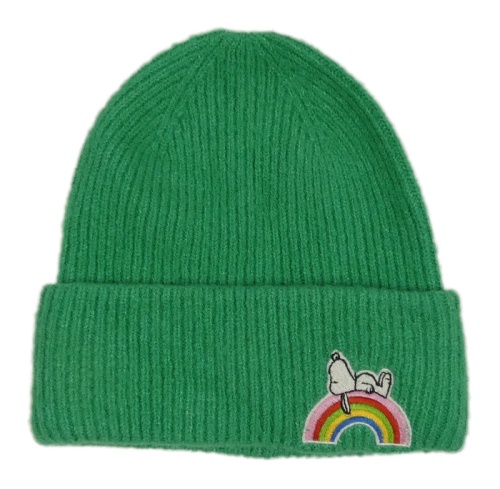 Zelená melírovaná rebrovaná čapica so Snoopym a dúhou M&S