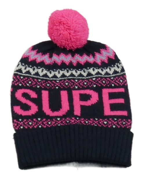 Tmavomodro-neónově ružová vzorovaná čapica s brmbolcom Superdry