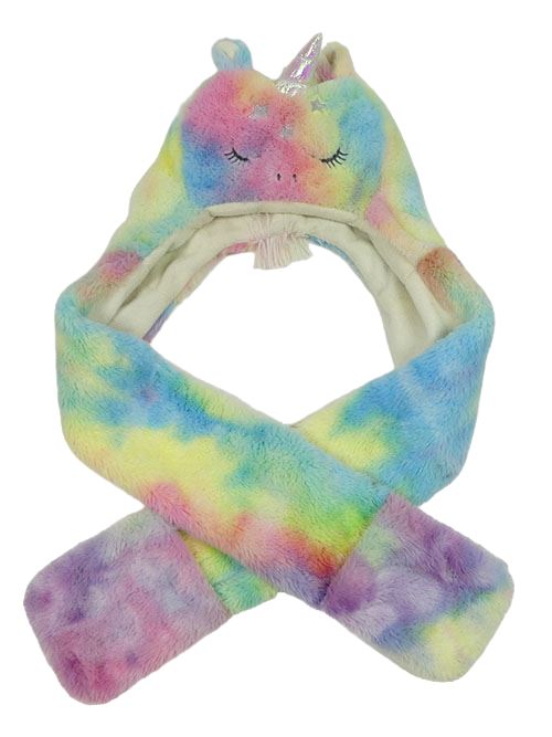 Farebná duhová chlpatá čapica s šálou - jednorožec