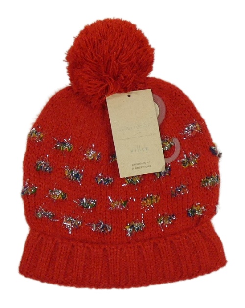 Nové - červená vzorovaná pletená čapica s brmbolcom LEIGH TUCKER