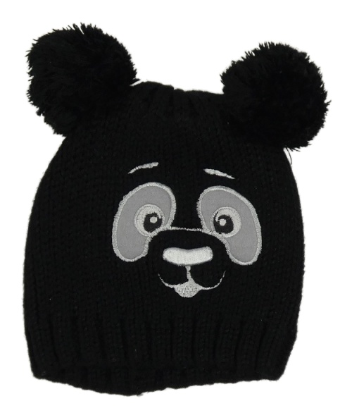 Čierna vlnená čapica s ňufáčikom a bambulemi