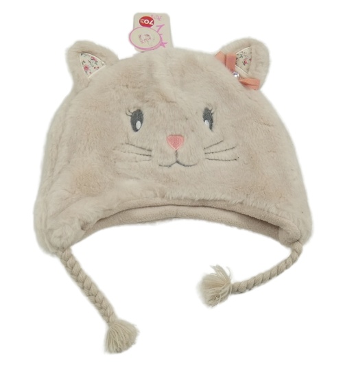-Nové Béžová kožušinová čapica s mačkou Angel