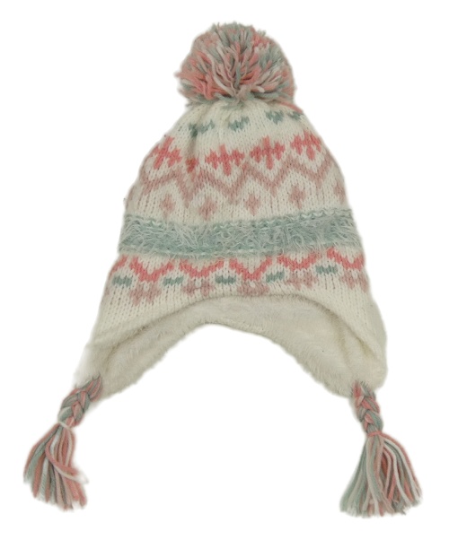 Bielo-ružovo-tyrkysová vzorovaná čapica s brmbolcom