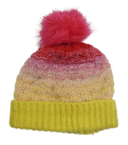 Červeno-ružovo-žltá pletená podšitá čapica s brmbolcom Next