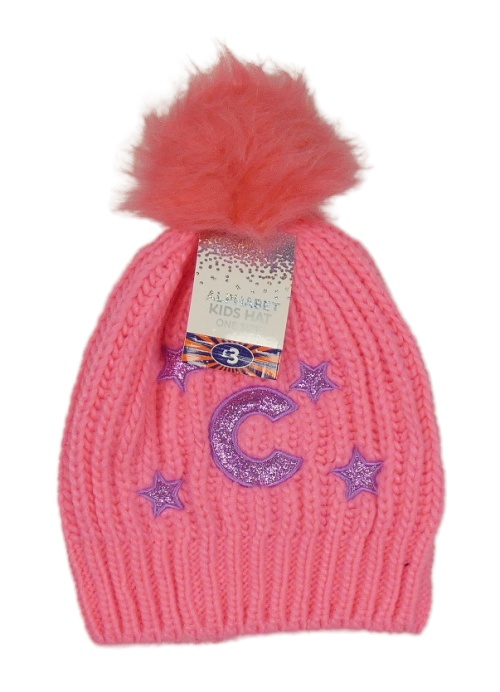 Nové - neónově ružová pletená čapica s písmenem a brmbolcom