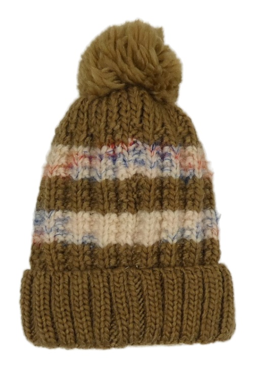 Bronzová rebrovaná pletená čapica s pruhmi a brmbolcom