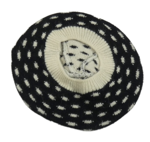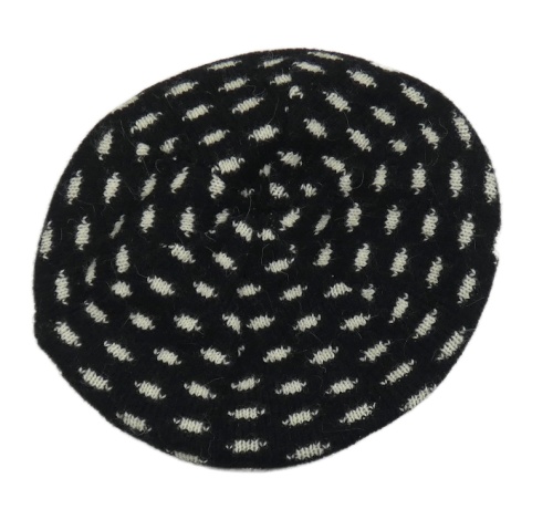 Čierno-biely vzorovaný pletený vlnený baretka