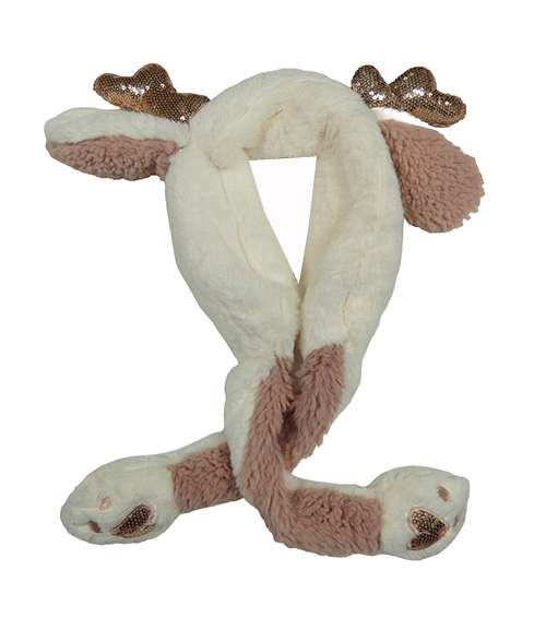 Smetanové kožešinové klapky na uši s uškami a flitrami