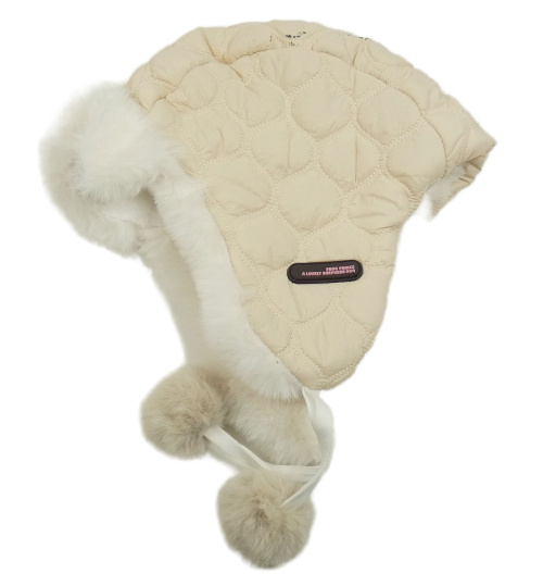 Světlepudrová prošívaná šusťáková zateplená beranice s uškami a bambulemi