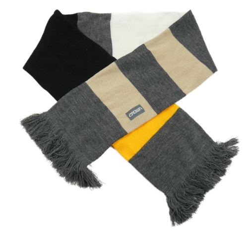 Sivo-béžovo-biela pruhovaná pletená čapica s strapcemi