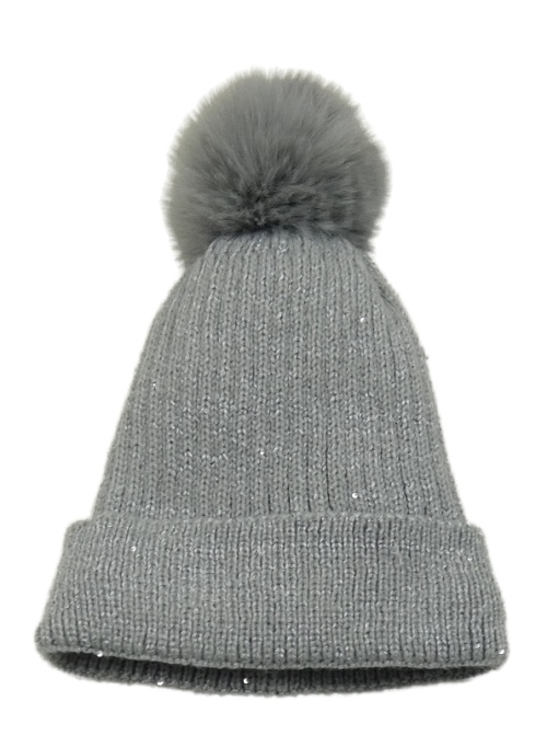 Sivá melírovaná vlnená zateplená čapica s flitrami a brmbolcom