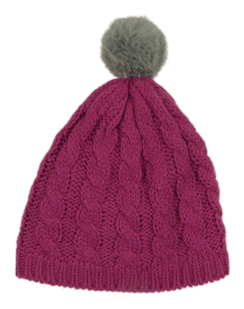 Tmavoružová pletená vzorovaná čapica s brmbolcom