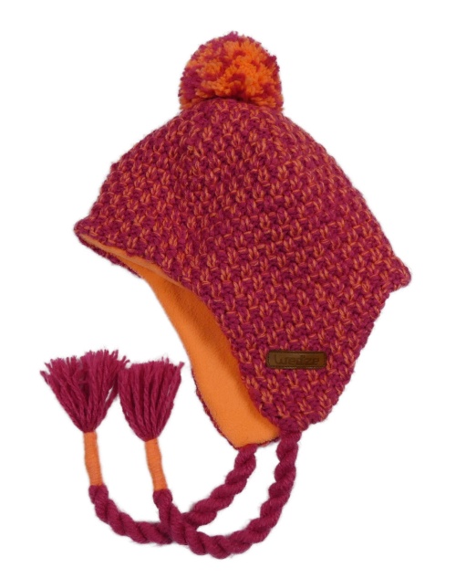 Tmavorůžovo-svetlooranžová melírovaná vzorovaná funkčná pletená čapica s brmbolcom Wed'ze