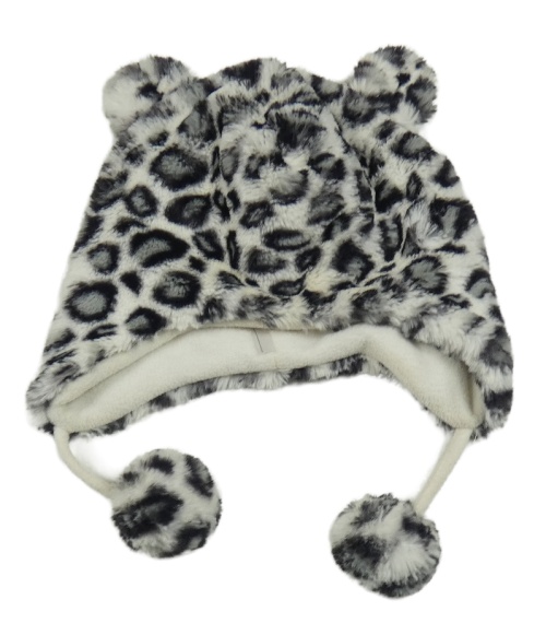 Bielo-sivo-čierna vzorovaná chlpatá čapica s uškami