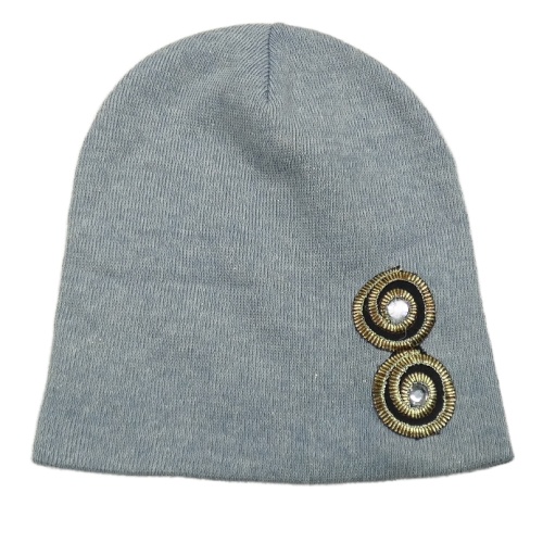Šedomodrá melírovaná čapica s výšivkou a kamienkami