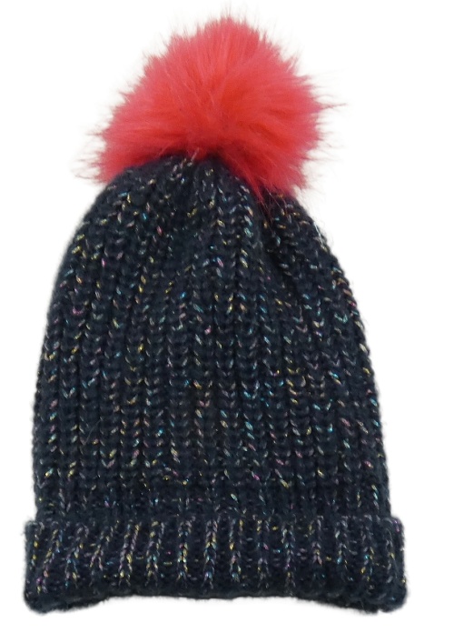 Tmavoodro-farebná melírovaná čapica s brmbolcom