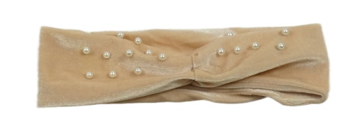 Pudrová zamatová čelenka s perlami