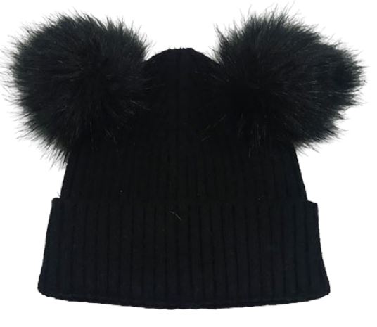 Čierna rebrovaná pletená čapica s bambulemi Next