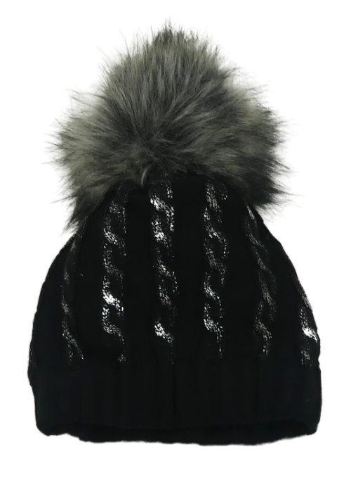 Čierno-strieborná vzorovaná čapica s brmbolcom