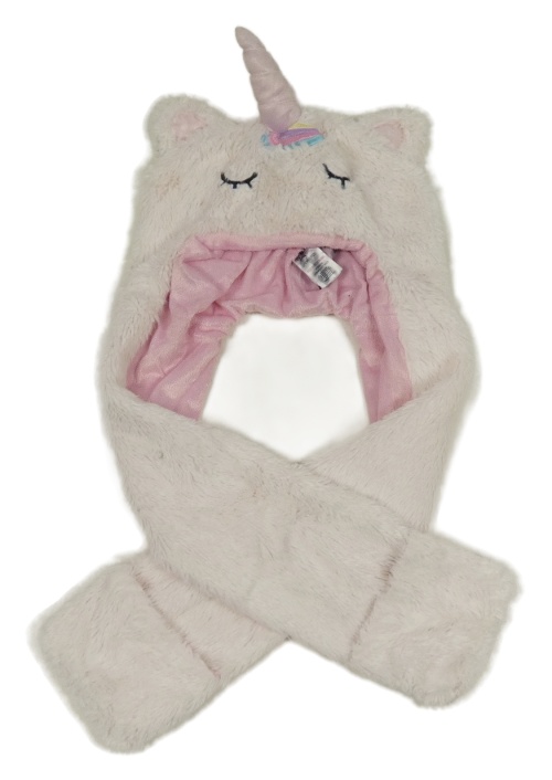 Biela chlpatá čapica so šálou - jednorožec Peacocks