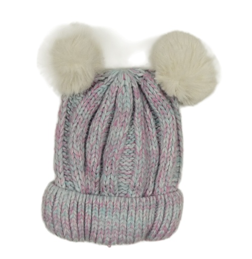 Světlemodro-ružová melírovaná pletená čapica s bambulemi George