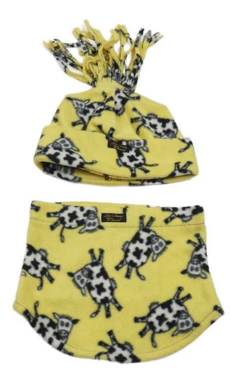2set- žltá fleecová čapica s kravičkami+ nákrčník