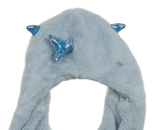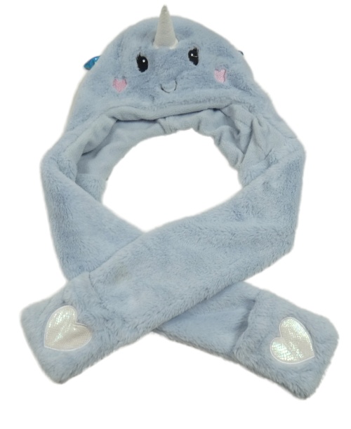 Svetlomodrá chlpatá čapica so šálou a ňufáčikom