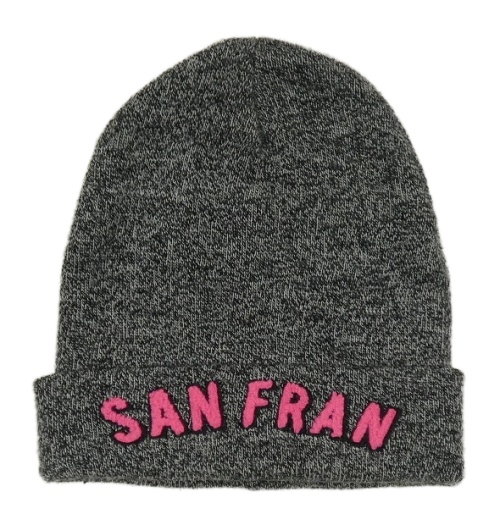 Tmavosivá melírovaná pletená čapica s ružovým nápisom H&M
