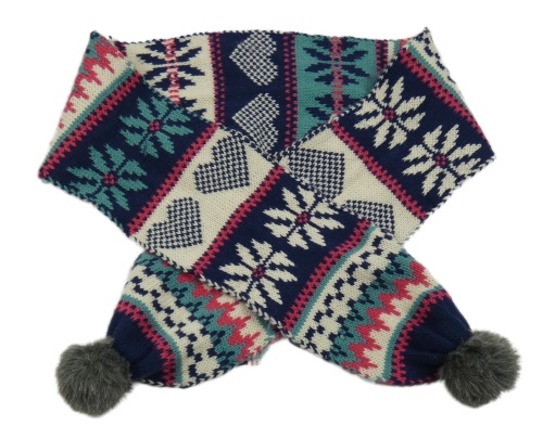 Farebná vzorovaná pletená šál s bambulemi