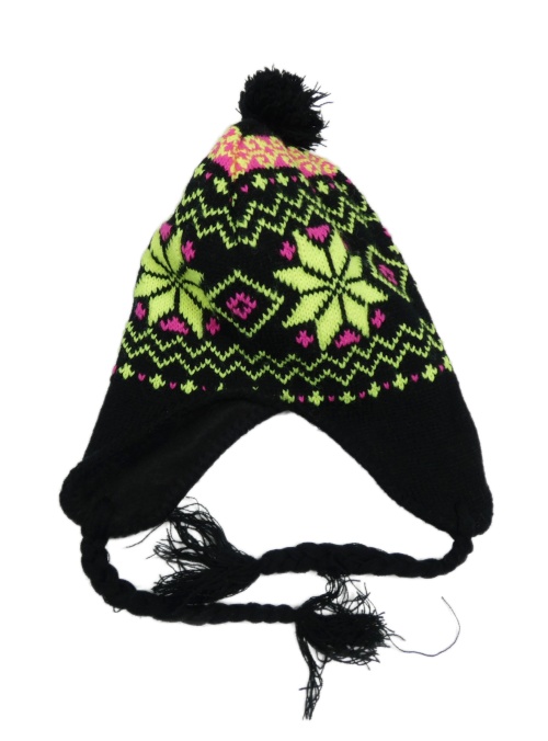 Čierno-neónová vzorovaná pletená podšitá čapica s brmbolcom
