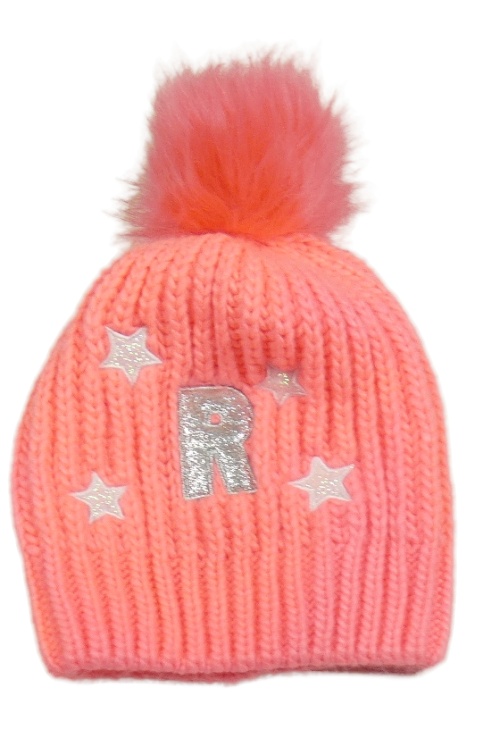 Neónově ružová pletená čapica s písmenem a brmbolcom