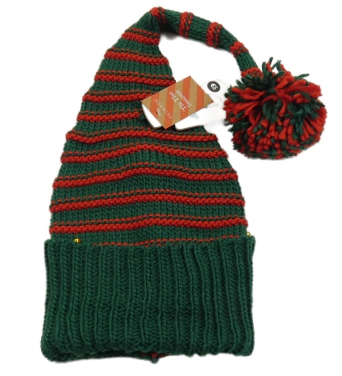 • Nové - Zeleno-červená pruhovaná pletená čapica s rolničkami a bambulí - elf Primark
