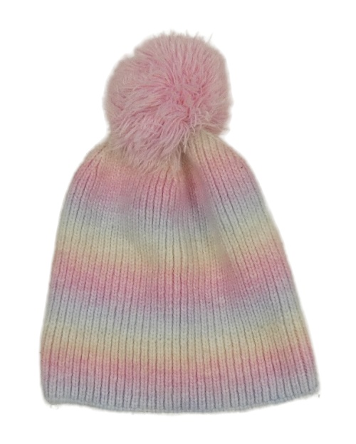 Farebná pruhovaná pletená rebrovaná čapica s brmbolcom
