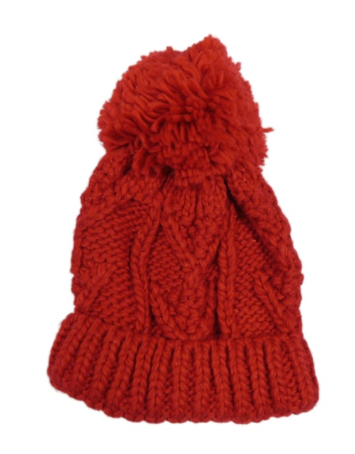 Červená vzorovaná čapica so trblietkami a brmbolcom Tu