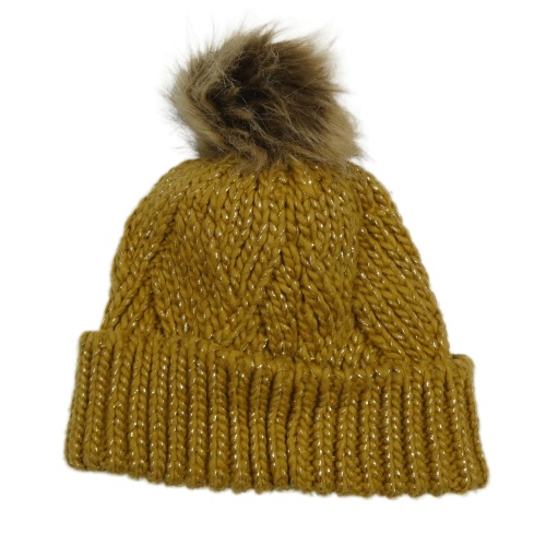 Okrová melírovaná vzorovaná čapica so trblietkami a brmbolcom Tu