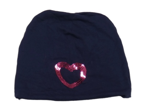 Tmavomodrá bavlnená čapica so srdcem z flitrů