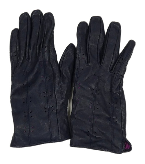 Tmavomodré koženkové podšité prstové rukavice s perforovaným vzorom