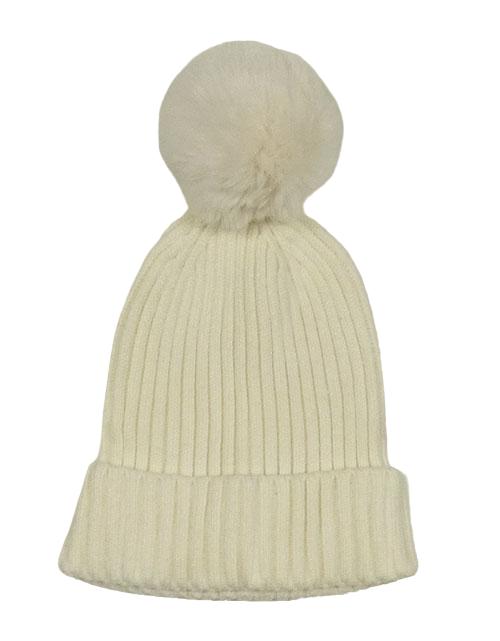 Smotanová rebrovaná pletená čapica s brmbolcom George