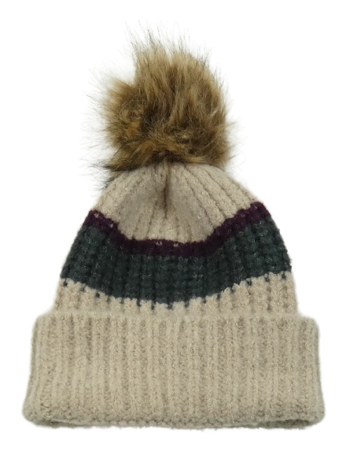 Béžová pletená čapica s prúžkami a brmbolcom Mountain Warehouse