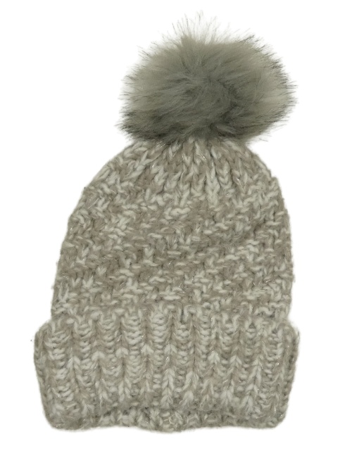 Sivo-biela melírovaná trblietavá čapica s brmbolcom