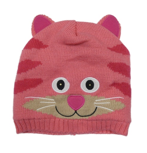 Ružová pletená čapica s ušima - mačka