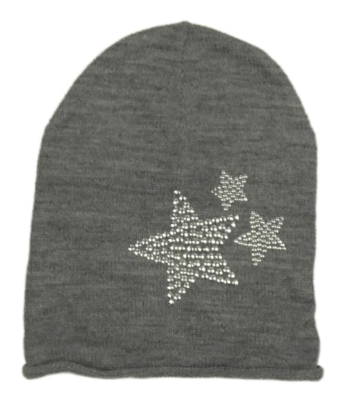 Sivá melírovaná pletená šmoulí čapica s hvězdičkami z peciček TCM