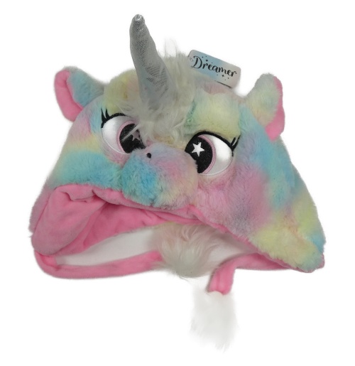 Nové - Farebná batikovaná plyšová čepice - jednorožec