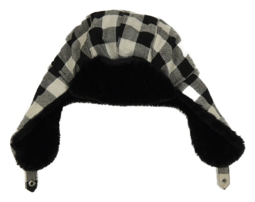 Černo-bílá kostkovaná beranice s kožešinou